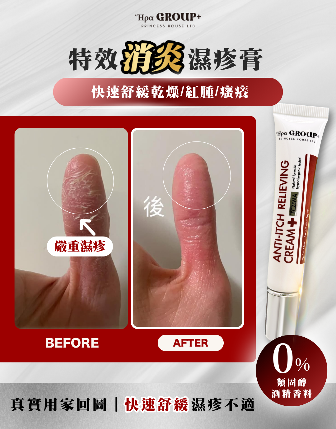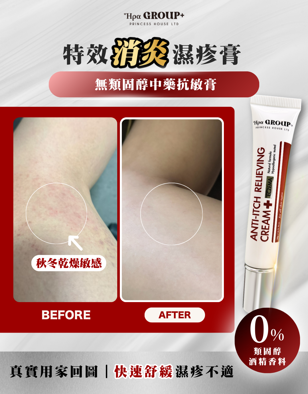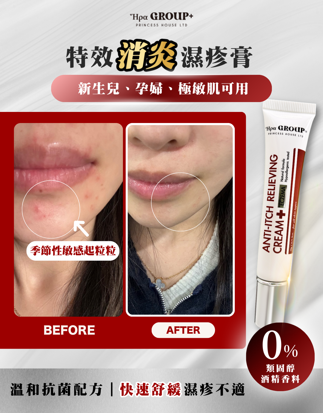 專為舒緩濕疹人士使用,有效緩解乾燥、紅腫和瘙癢,幫助修復皮膚屏障,促進皮膚自然癒合。