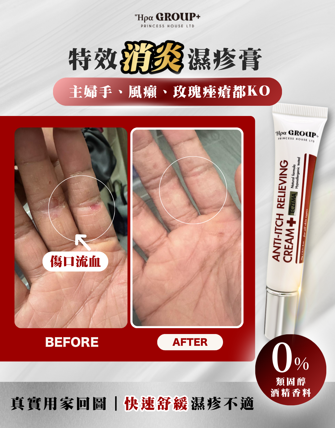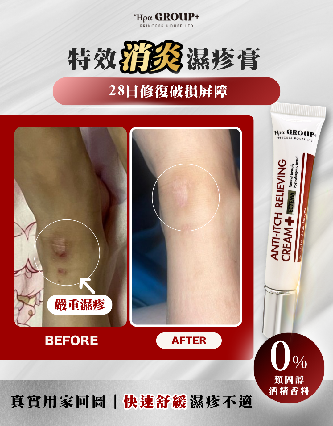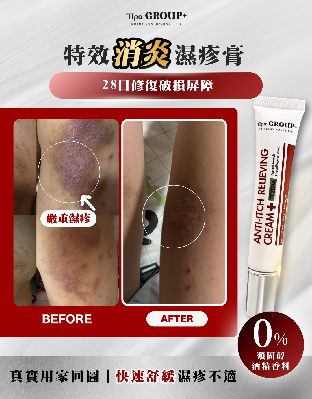 專為舒緩濕疹人士使用,有效緩解乾燥、紅腫和瘙癢,幫助修復皮膚屏障,促進皮膚自然癒合。